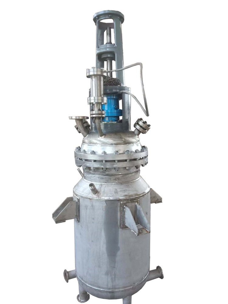 反應釜由鍋體、鍋蓋、攪拌器、夾套、支承及傳動裝置、軸封裝置等組成,材質及開孔可根據用戶的工藝要求制定。加熱形式有電加熱、油加熱、氣加熱、水加熱(或冷卻)、明火加熱等。夾套形式分為:夾套型和外半管型,夾套油加熱型都設有導流裝置。攪拌形式一般有槳式、錨式、框式、螺條式、刮壁式等。高轉速類有分散葉輪式、渦輪式、高剪切式、推進器式,供客戶根據工藝選擇。傳動形式有普通電機、防爆電機、電磁調速電機、變頻器等,換熱器有擺線針輪式、蝸輪式、行星無極變速式。軸封為普通水冷卻填料密封、組合式四氟填料密封、機械密封。出料形式有球閥、下展閥。